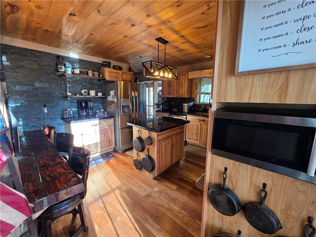 Escape to your own private haven in the heart of Bradford, NY with this stunning log sided cabin retreat. Nestled amidst 3.2 acres of parklike setting, this remarkable property offers tranquility and peace. The centerpiece of the estate is a beautifully crafted 5 bedrooms 2 full bathroom 2 half bathroom home that exudes rustic charm yet boasts modern comforts with custom finishes throughout. For the car enthusiast or hobbyist, an impressive 3 bay garage/shop awaits, complete with an accessory 1 bedroom 1 bathroom apartment above - perfect for guests or rental income potential. Garage has electricity, heat, bathroom, laundry, lots of storage space and a lift for ease of working on vehicles. Embrace nature's beauty by strolling along the serene pond accompanied by a gentle stream, creating an idyllic backdrop for relaxation and reflection. Entertain family and friends on warm summer days beside the sparkling above ground pool or enjoy cozy nights on your spacious wrap around covered porch. Full basement offers a half bathroom, beautifully crafted log stairs and walkout access. With its unique blend of function and rustic allure set against breathtaking natural surroundings, this property captures the essence of a dream escape, while providing functional spaces. Discover unparalleled privacy and lifestyle at its finest; make this retreat yours today!